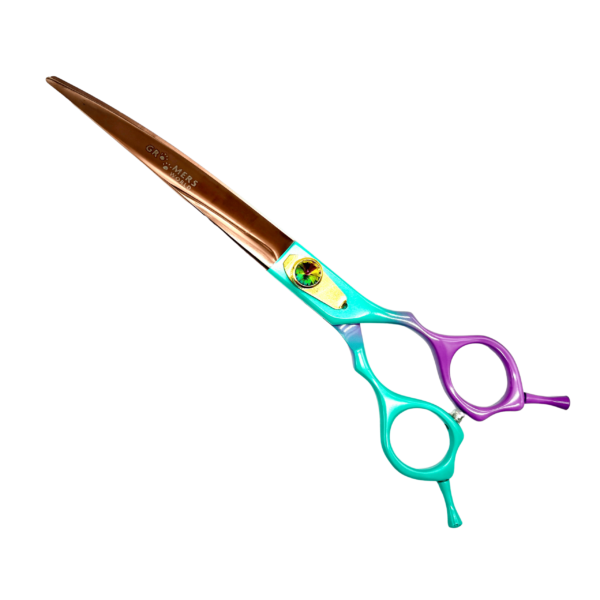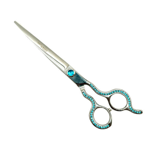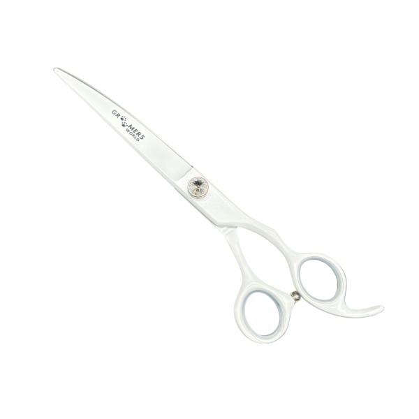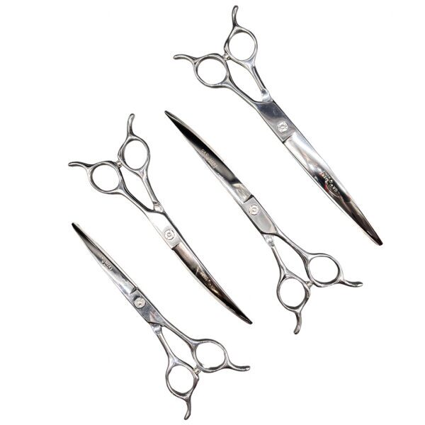Curved scissors follow the natural contours of the dog’s body and are popular for round shapes and soft finishes.