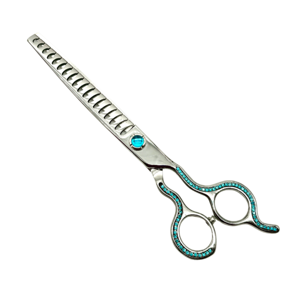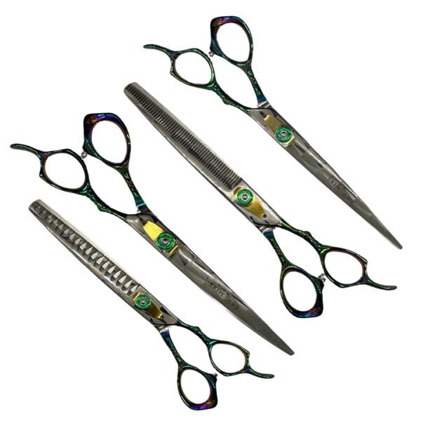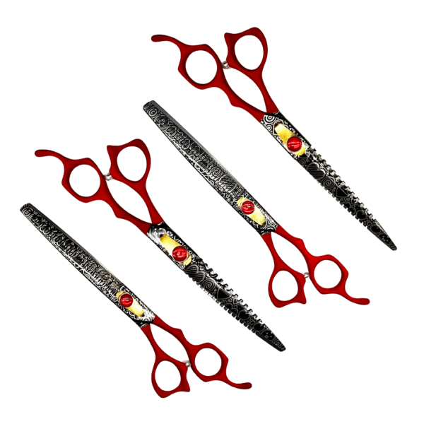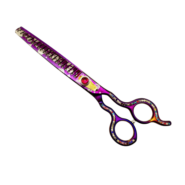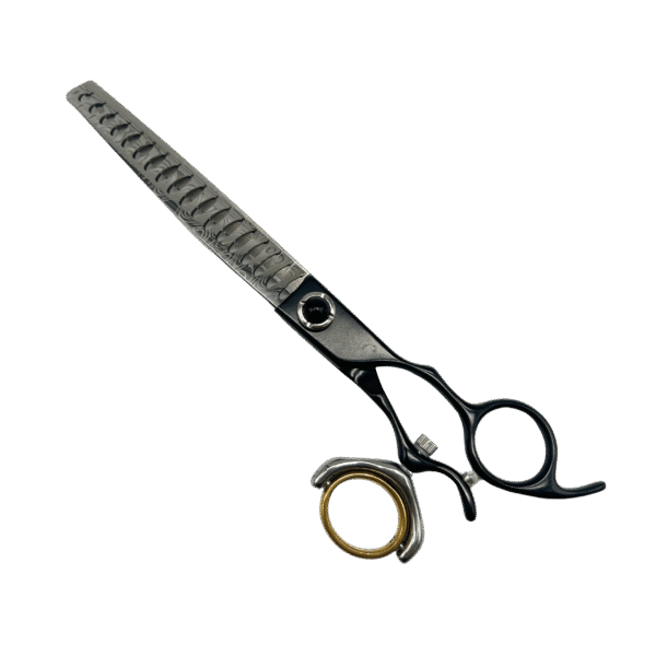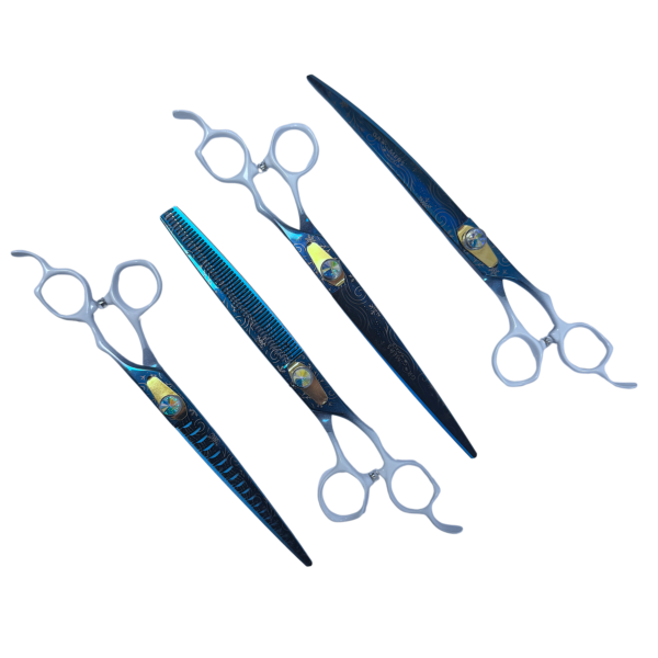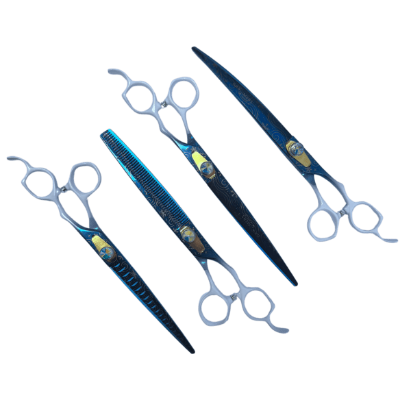 - Large breeds (Golden Retrievers, Standard Poodles): 8”+ scissors allow for speed and smoother finishes across large coat areas. Chunkers are also useful for managing heavy coats.
