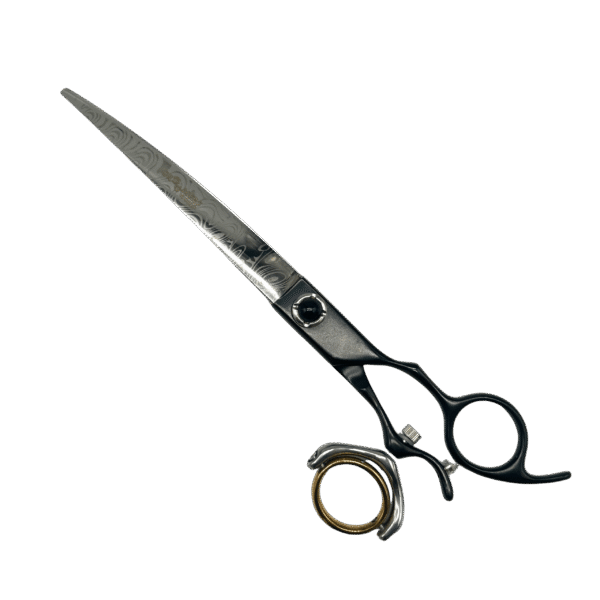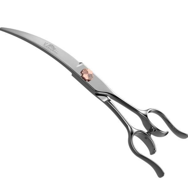 Curved scissors allow groomers to follow the natural shape of a dog’s body. They are especially useful for rounding heads, paws, and muzzles, giving a softer and more balanced finish compared to straight scissors.