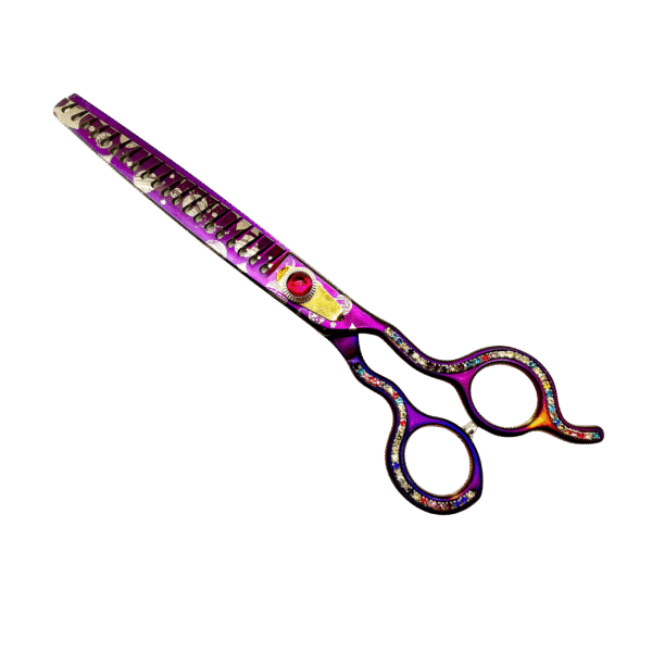 There are several different types of scissors – straight, curved, thinning, chunkers and blenders. The in-depth “what they do and when to use them” is covered in your “Straight vs. Curved vs. Thinning Scissors: Which Type Do You Need?” guide.