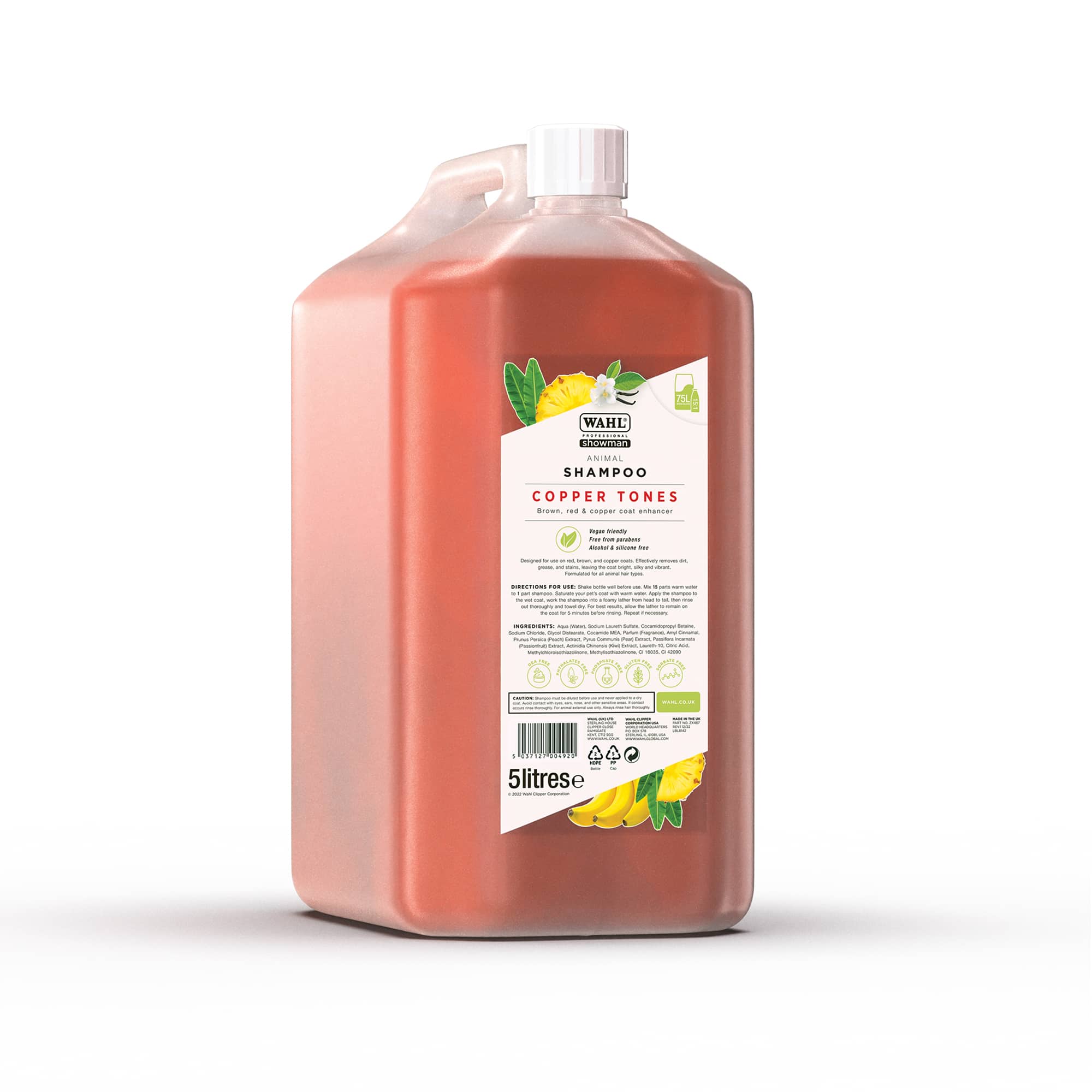 Wahl Copper Tones Shampoo is suitable for all animal hair types and will leave your pet’s coat bright, silky, and shining with health and vitality.Concentrate 15:1Free From:Paraben free, vegan friendly, gluten free, silicone free, phthalates free, alcohol free, sorbates free, phosphate free, DEA free