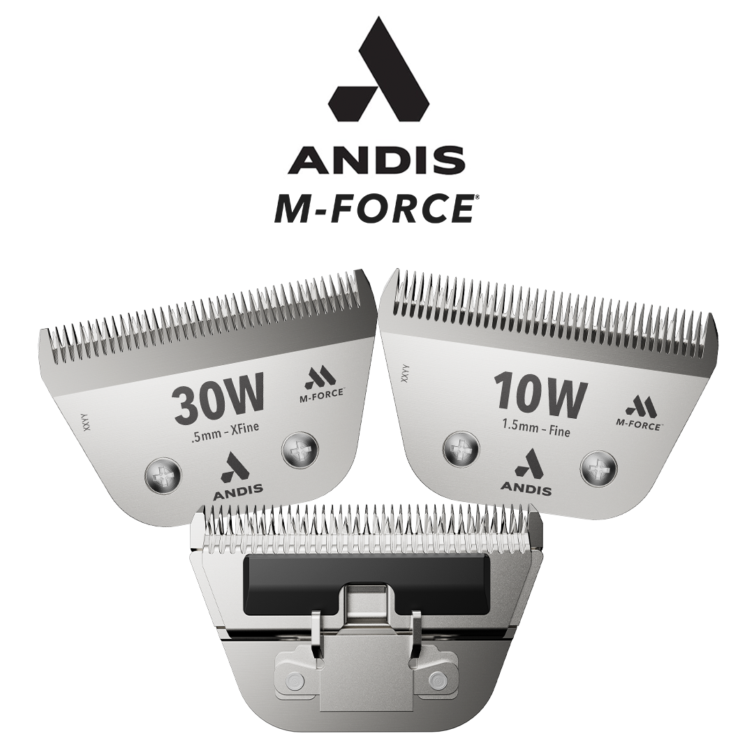 For professional pet groomers and large-animal fitters who need to cover more area in less time without overheating, Andis M-Force® 10W ultraEDGE Animal Wide Blade combines magnetic blade tension with a wide blade design. Clip through coats faster and cooler than ever before.