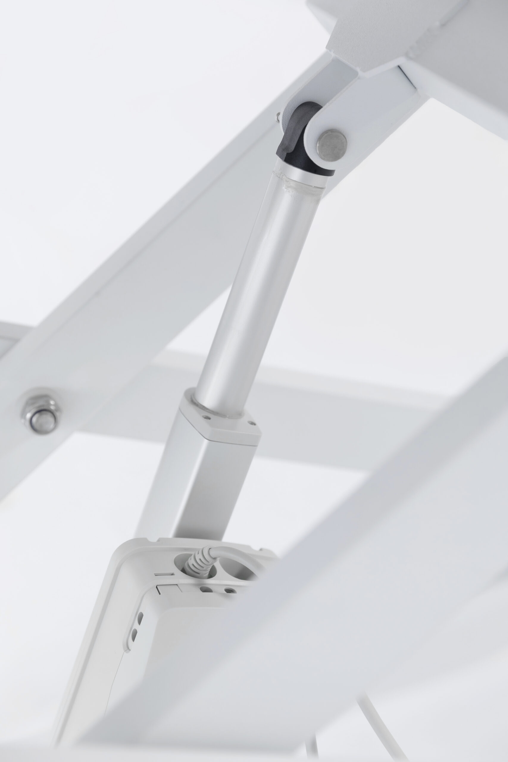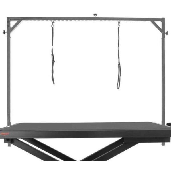 An overhead grooming arm with restraint loops
