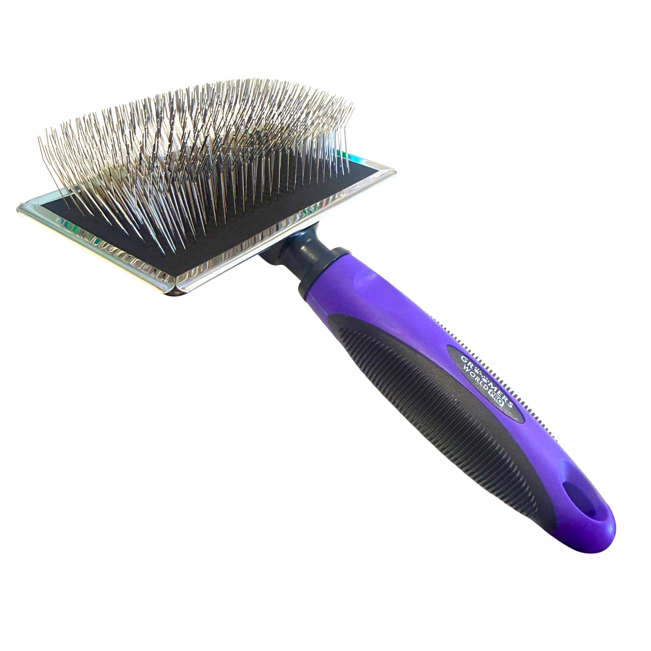 Pet stainless steel brush are crafted from the high quality stainless steel. features gentle, stainless steel pins for easy clean up. Frequent brushing helps prevent hair balls and enhances the coat’s natural luster.Antistatic soft nylon pins allow efficient hair grooming.The comfort grip handle and stainless steel pins provide excellent grooming results with minimal effort. Reduces shedding for a healthy coat and home.Fine stainless-steel pins glide easily through coat and are gentle for even sensitive skin.Use for removing mats, loose hair and debris.The comfortable stainless steel pins provide excellent grooming results with minimal effort.